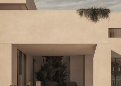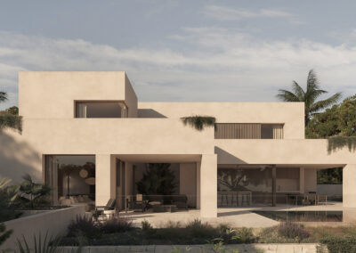 El proyecto apuesta por la atemporalidad y por una arquitectura que se percibe como refugio. La disposición de las piezas responde a una voluntad de intimidad, al tiempo que el uso de grandes superficies acristaladas garantiza una conexión fluida con el exterior. El resultado es una vivienda que se enraíza en la tierra mediterránea y, a su vez, abre a la luz. Equilibrando privacidad y apertura, recogimiento y expansión.